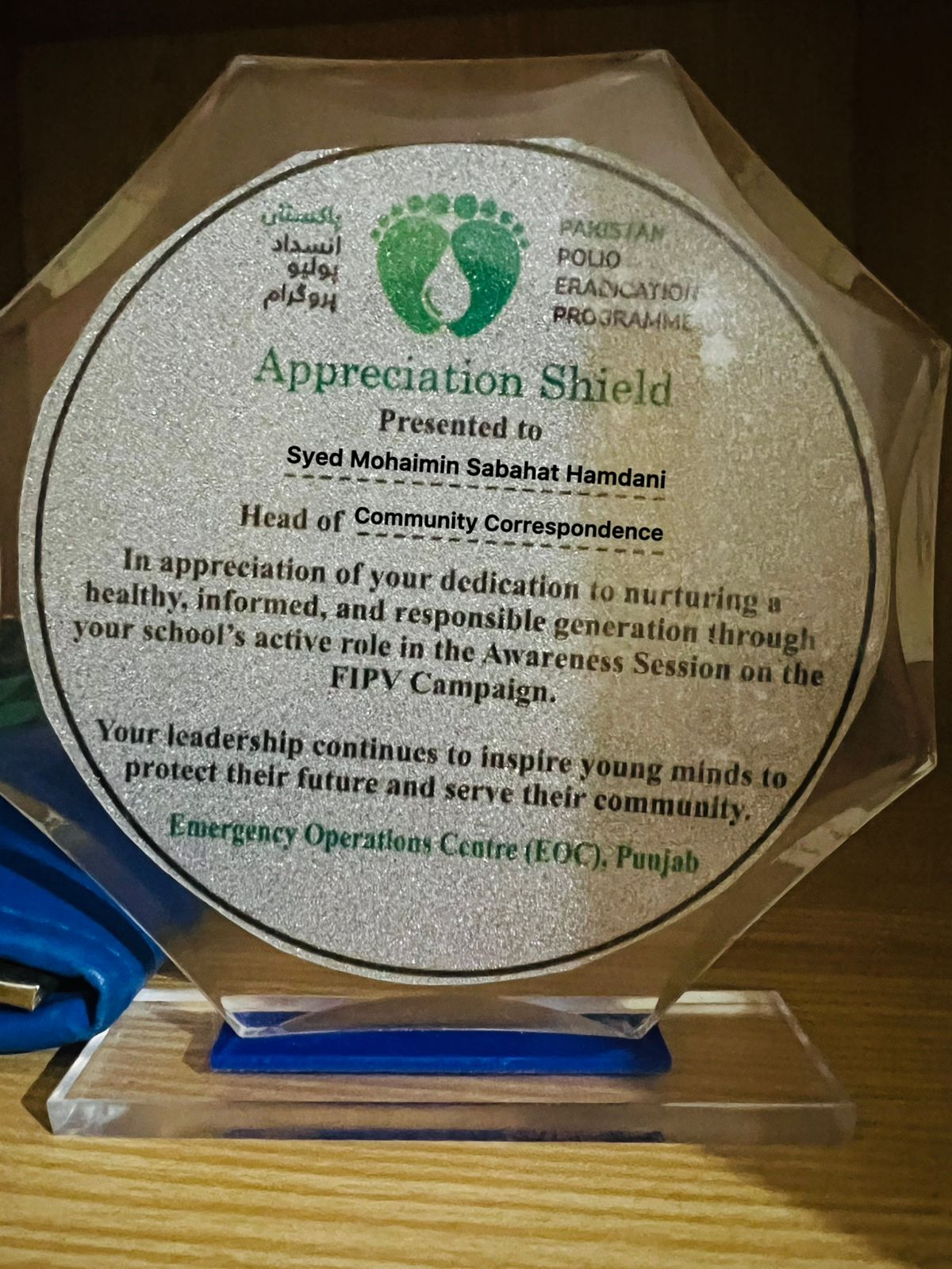 Pakistan Polio Eradication Programme / EOC Punjab • Appreciation Shield
